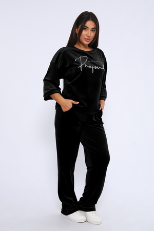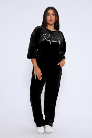 Костюм женский с широкими брюками и свободной кофтой с рукавами 3/4. Модель выполнена из премиального велюра.