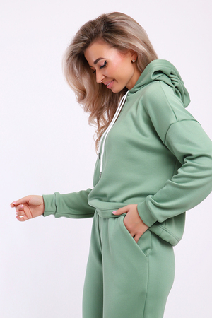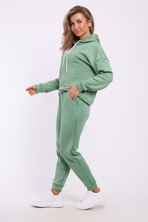 Модный утеплённый костюм выполнен из материала нового поколения футер найк - спорт. Это мягкое и эластичное полотно, утеплённое мелковорсным мехом, цвет меха в тон основного цвета. Ворс направленный 3 мм, мягкий и не блестящий. Полотно эластичное и очень приятное на ощупь с обеих сторон. Благодаря составу не вытягивается, не образует катышки, не сыпется и не требует особого ухода. Костюм такого плана - это модная и стильная вещь, идеально подходящая для активного образа жизни, отдыха и для повседневной носки. Модель выполнена из специально разработанной для спортивных занятий ткани, которая отводит влагу, позволяет коже дышать и настолько эластична, что тянется в 4 - х направлениях. Поэтому костюм идеален для зимних видов спорта, например, катания на коньках, сноуборде или лыжах в холодное время, а также для скандинавской ходьбы. Костюм состоит из толстовки и брюк. Толстовка с капюшоном и шнурком. Линия плеча спущена, длинный рукав. По низу толстовки имеется резинка с фиксатором, с помощью которой Вы можете собрать изделие как вам хочется и нравится. Брюки представлены с вместительными боковыми карманами. Манжеты брюк выполнены из основного материала, а пояс на специализированной поясной машине, что делает швы ровными и качественными. Свободный крой прекрасно будет смотреться на дамах с любыми формами. Костюм такого плана представлен в широкой размерной сетке, что позволяет выбрать его как девушке, так и женщине. Однотонный костюм модных расцветок будет удачным выбором для поездок в отпуск, на пикник, для школы, для активного отдыха и прогулок по городу. Будет гармонично сочетаться как с кроссовками, так и с ботинками. Используя эту модель в качестве домашнего костюма, Вы поймёте, что это именно тот самый идеальный вариант, в котором будете себя чувствовать удобно, комфортно и современно. Костюм с брюками - это настоящая находка для тех, кто ценит свою индивидуальность!