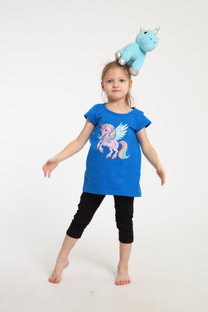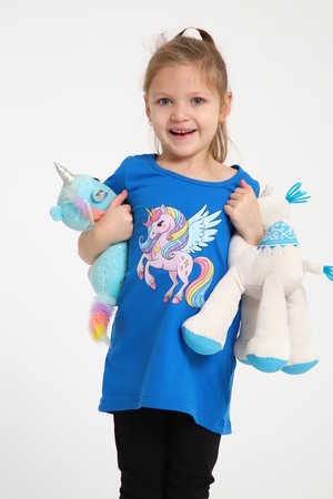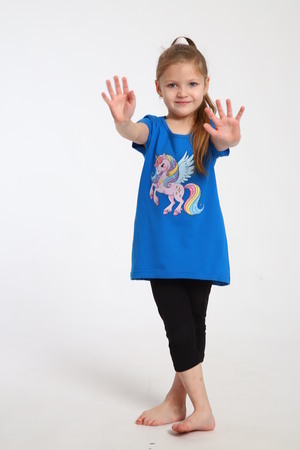 Яркий костюм для маленьких принцесс собран из туники с радужным единорогом и тресс на эластичной резинке шириной 2 см. на талии. Комплект из 100% хлопка, самый удачный вариант для активного ребенка. Туника А - образного силуэта с коротким рукавом и качественной термопечатью по переду. Горловина круглая и достаточно широкая, что позволит ребенку самому без труда надеть и снять тунику через голову. Достаточно разнообразный цветовой ряд, даст возможность выбрать вам костюм по душе. На фото модель представлена в 32-ом размере.