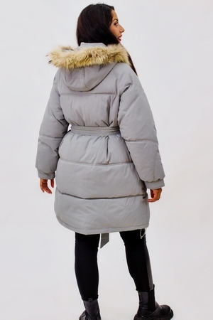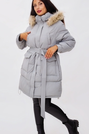 Женская куртка на поясе с натуральным мехом арт. 23226