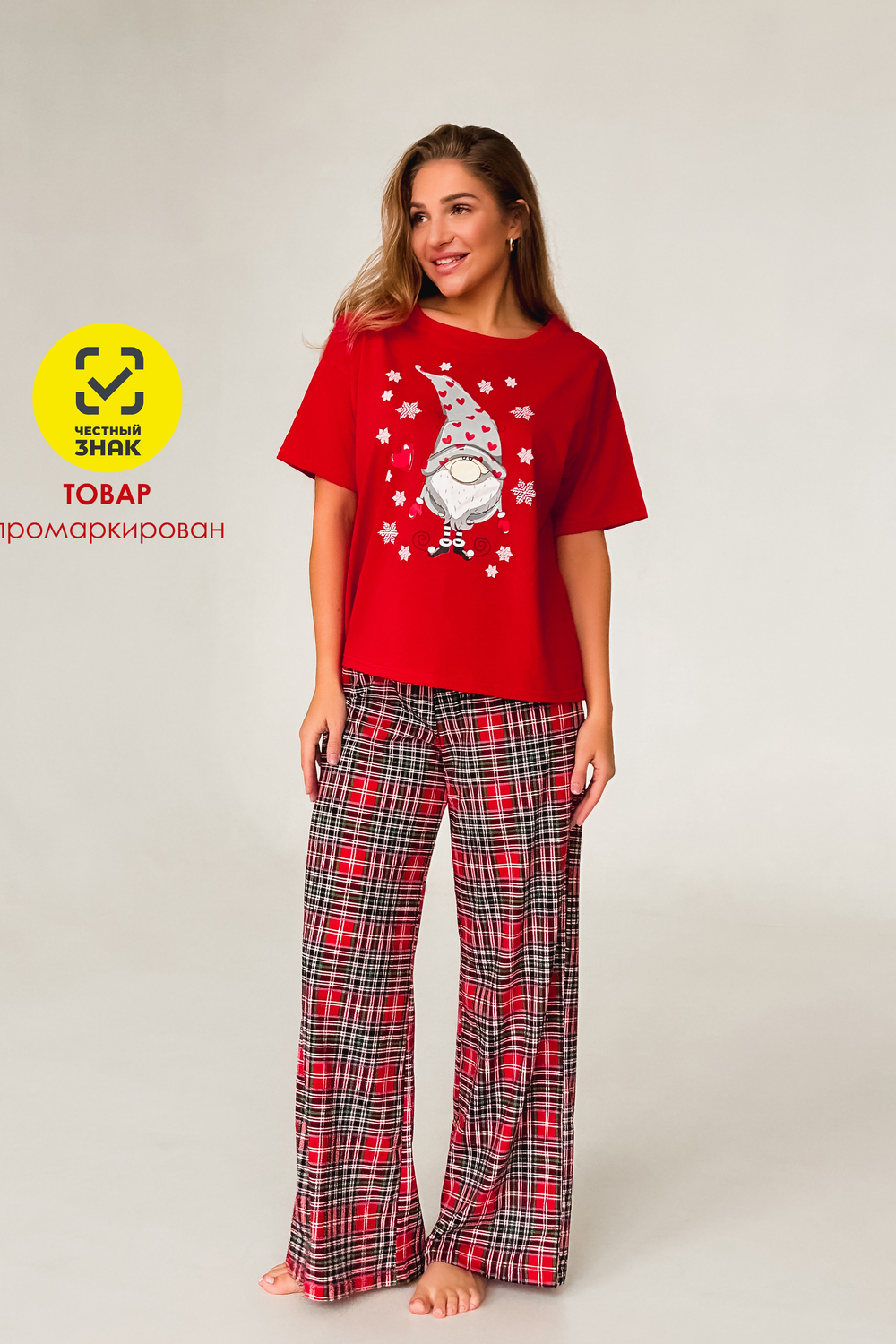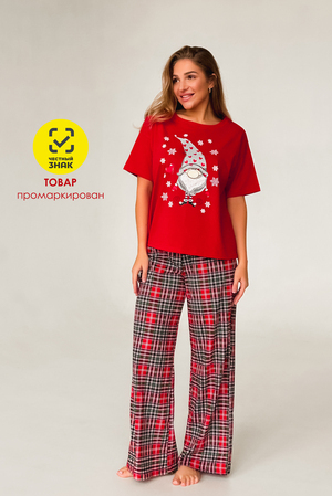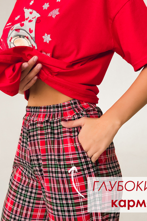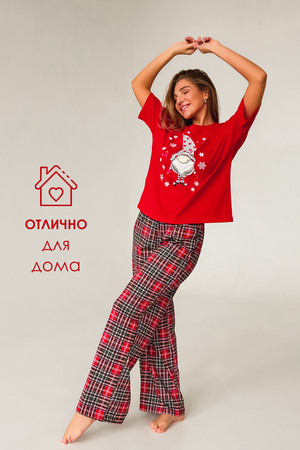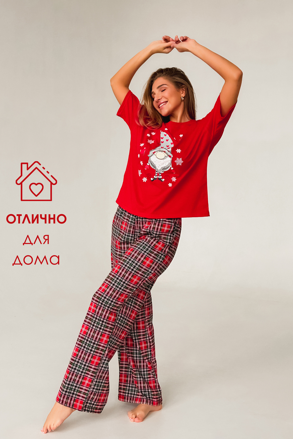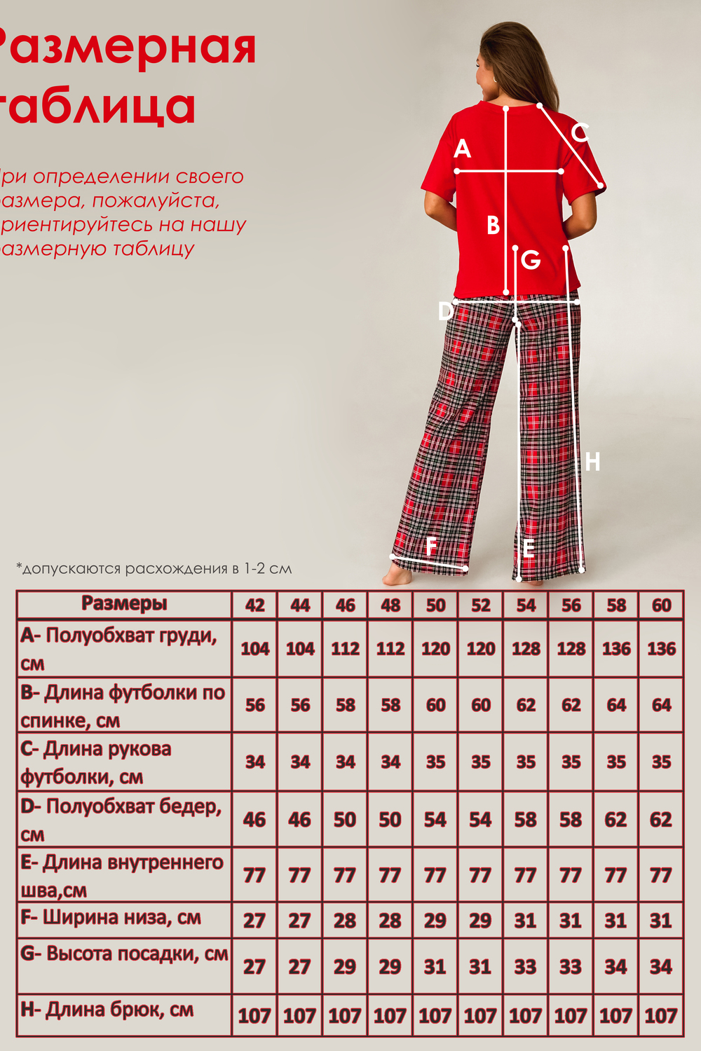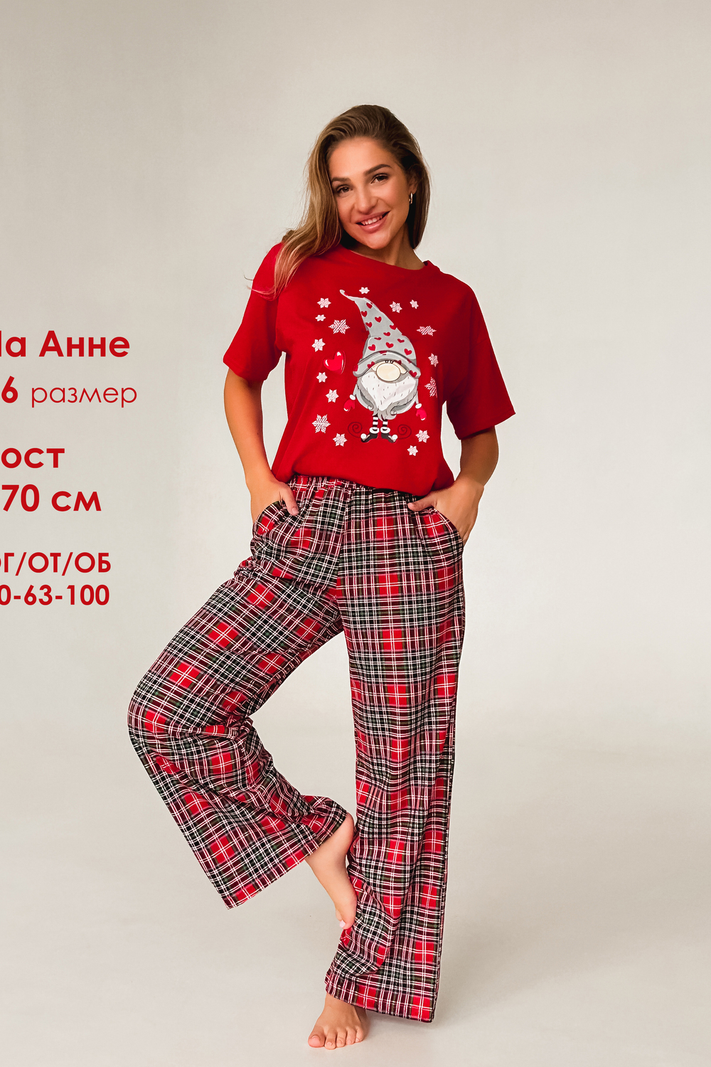 Женская пижама с брюками - идеальный выбор для комфортного отдыха дома. Этот домашний костюм сочетает в себе уют, качество и стиль, делая его незаменимой частью гардероба каждой женщины. Легкая пижама выполнена из 100% хлопка - натурального, дышащего материала, который обеспечивает оптимальную температуру тела во время сна. Хлопковая ткань из Турции приятна на ощупь и не вызывает раздражения. Брюки в клетку и полоску придают пижаме женственность и элегантность, а футболка дополняет образ своим оверсайз кроем и стильным принтом. Такой домашний костюм не только удобен в повседневной жизни, но и выглядит модно и аккуратно. Пижама для сна представлена в больших размерах, что позволяет каждой женщине подобрать оптимальный вариант посадки, подходит для полных и стройных женщин, высокого и невысокого роста. Этот домашний комплект может быть использован в повседневной жизни для дома или даже во время беременности. Удобный пояс на широкой резинке обеспечивает надежную фиксацию, не стесняя движения. Мягкая ткань не сковывает движений, обеспечивая ощущение свободы и комфорта на протяжении всей ночи. Модный комплект это отличный подарок на любой праздник маме, бабушке, сестре, дочке, подруги, коллеге, на выписку, на день рождения, Новый год, Рождество, 8 марта. Костюм идёт в размер и для вашего удобства мы разработали размерную сетку, она именно для нашей модели. Посмотреть её можно пролистав фото (второй слайд). А те, кто любит стиль oversize можно выбрать на размер больше.  Женская пижама с брюками больших размеров - это не просто одежда для дома, это идеальное сочетание стиля, комфорта и качества. Почувствуйте себя уютно и модно даже во время отдыха! Пижама женская не линяет и не теряет форму, если соблюдать правила ухода. Купить пижаму женскую недорого на Натали  брэнда Iv-trik-stail ваш правильный выбор, желаем приятных покупок!