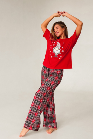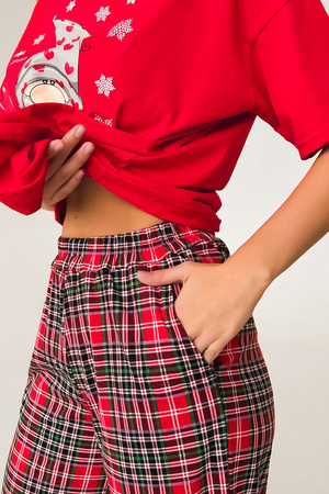 Женская пижама с брюками - идеальный выбор для комфортного отдыха дома. Этот домашний костюм сочетает в себе уют, качество и стиль, делая его незаменимой частью гардероба каждой женщины. Легкая пижама выполнена из 100% хлопка - натурального, дышащего материала, который обеспечивает оптимальную температуру тела во время сна. Хлопковая ткань из Турции приятна на ощупь и не вызывает раздражения. Брюки в клетку и полоску придают пижаме женственность и элегантность, а футболка дополняет образ своим оверсайз кроем и стильным принтом. Такой домашний костюм не только удобен в повседневной жизни, но и выглядит модно и аккуратно. Пижама для сна представлена в больших размерах, что позволяет каждой женщине подобрать оптимальный вариант посадки, подходит для полных и стройных женщин, высокого и невысокого роста. Этот домашний комплект может быть использован в повседневной жизни для дома или даже во время беременности. Удобный пояс на широкой резинке обеспечивает надежную фиксацию, не стесняя движения. Мягкая ткань не сковывает движений, обеспечивая ощущение свободы и комфорта на протяжении всей ночи. Модный комплект это отличный подарок на любой праздник маме, бабушке, сестре, дочке, подруги, коллеге, на выписку, на день рождения, Новый год, Рождество, 8 марта. Костюм идёт в размер и для вашего удобства мы разработали размерную сетку, она именно для нашей модели. Посмотреть её можно пролистав фото (второй слайд). А те, кто любит стиль oversize можно выбрать на размер больше. Женская пижама с брюками больших размеров - это не просто одежда для дома, это идеальное сочетание стиля, комфорта и качества. Почувствуйте себя уютно и модно даже во время отдыха! Пижама женская не линяет и не теряет форму, если соблюдать правила ухода. Купить пижаму женскую недорого на Натали брэнда Iv-trik-stail ваш правильный выбор, желаем приятных покупок!