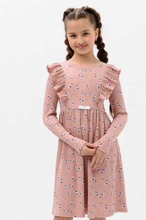 Платье для девочки в садик с длинным рукавом из трикотажного полотна в рубчик с рисунком, расширенное от линии талии, приталенного силуэта, верхние части переда и спинки с присборенными крылышками, по линии талии по центру пришит декоративный элемент. Сшито из набивного мягкого материала 95% хлопок 5% лайкра - лапша. Идеально платье в детский сад, для прогулок, для праздника и на каждый день, обладает прочностью, которая позволяет Вашей девочке активно играть и веселиться, не ограничивая движения. Прекрасная посадка позволяет использовать, как повседневное, а ещё наше платье для девочки не имеет застежек, что делает его легким в надевании и снятии, ребёнок сможет самостоятельно одеваться и чувствовать себя самой красивой принцессой. В нашей одежде не будет жарко в период включенного отопления осенью, весной и зимой. Подойдёт в качестве подарка на Новый 2024 Год, выпускной, день рождения.