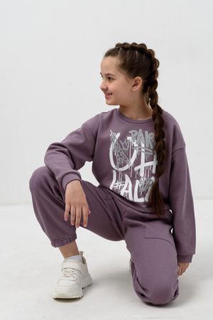 Костюм для девочки представляет собой двойку, состоящий из штанов и стильного свитшота. Костюмчик идеально подходит как для повседневной носки в школу или детский сад и для дома. Наш спортивный костюм для детей сочетает в себе оригинальный фасон трикотажного лонгслива и брюк, подойдёт подростку девушке.