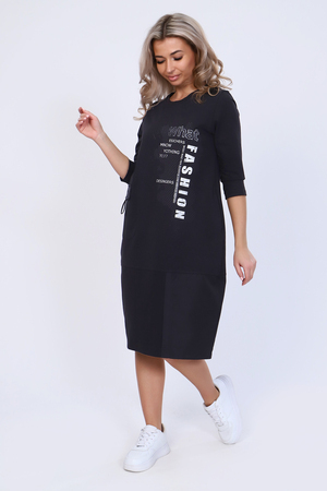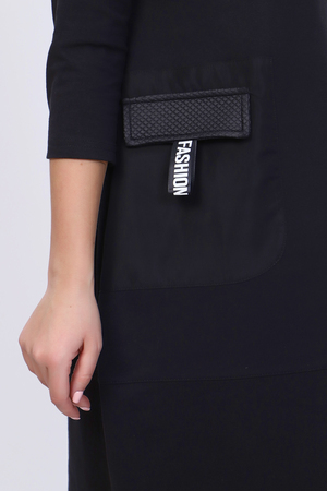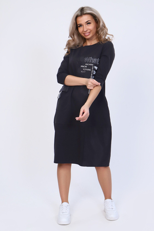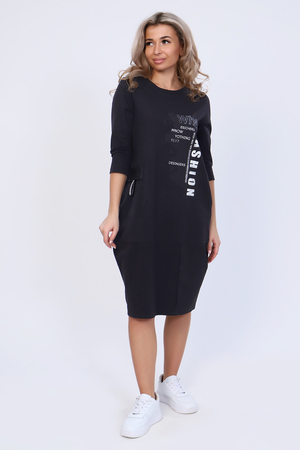 Модное женское платье в стиле оверсайз подойдет на любой тип фигуры. Главная изюминка платья - декоративный карман из кожи и большой, красивый принт спереди. Рукав 3/4, длина ниже колена, карман в боковом шве - прекрасный вариант для тех, кто любит уютную и удобную одежду.