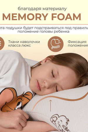 Подушка анатомическая с эффектом памяти модель Kids (40х60 см) – самая мягкая модель из всех представленных подушек Асветида. Создавалась и разрабатывалась специально для детей, подростков и школьников. Обеспечивает правильное положение головы и шеи для сна. Благодаря вспененной структуре наполнителя, анатомическая подушка эластичная, что способствует комфортному и здоровому сну Вашего ребенка. В составе пена с эффектом памяти – это инновационный материал, который называется пенополиуретан. Благодаря материалу «Мемори», или как его еще называют «Мemory Foam», мышцы шеи полностью расслабляются во время сна, а шейный отдел позвоночника остается в правильном положении. Анатомическая форма позволяет принять комфортное положение во время сна на боку, на животе или на спине. Абсолютно гипоаллергенная, так как она изготовлена из дышащих экологически чистых материалов. Благодаря этому поддерживается комфортная температура покрытия во время сна.