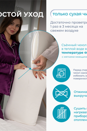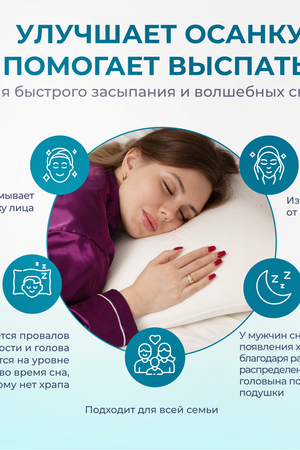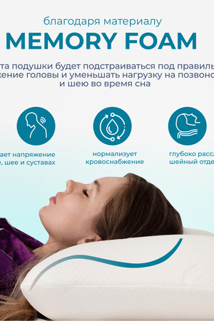 Подушка анатомическая с эффектом памяти Асветида Light 50*70 обладает классической формой с закругленными краями. Это обеспечивает правильное положение головы и шеи во время сна. Благодаря вспененной структуре наполнителя, анатомическая подушка эластичная, что способствует комфортному и здоровому сну. В составе пена с эффектом памяти – это инновационный материал, который называется пенополиуретан. Благодаря материалу «Мемори», или как его еще называют «Мemory Foam», мышцы шеи полностью расслабляются во время сна, а шейный отдел позвоночника остается в правильном положении. Анатомическая форма позволяет принять комфортное положение во время сна на боку, на животе или на спине. Кроме того, подушка предотвращает отеки лица, которые могут возникнуть при неправильном положении головы. Абсолютно гипоаллергенная, так как она изготовлена из дышащих экологически чистых материалов. Благодаря этому поддерживается комфортная температура покрытия во время сна. Подушка Асветида Light помогает решить такие проблемы как: • храп; • бессонница; • головные боли; • боли в шее; • боли в спине. Для тех, кто заботится о своем здоровье и комфорте во время сна.
