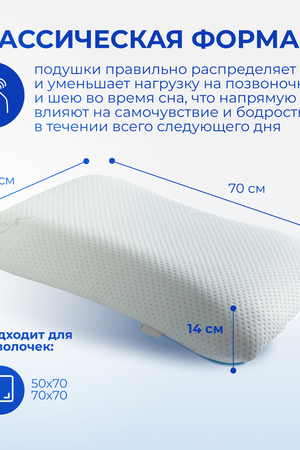 Подушка Асветида Silver 50х70х14 с эффектом памяти(средней жесткости)