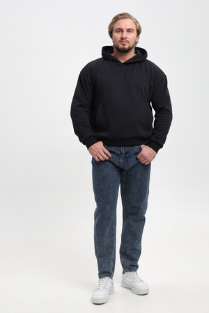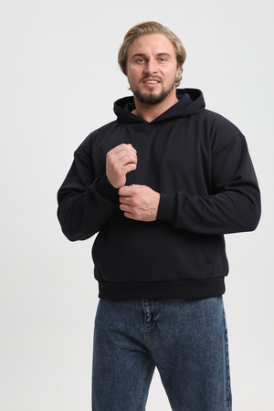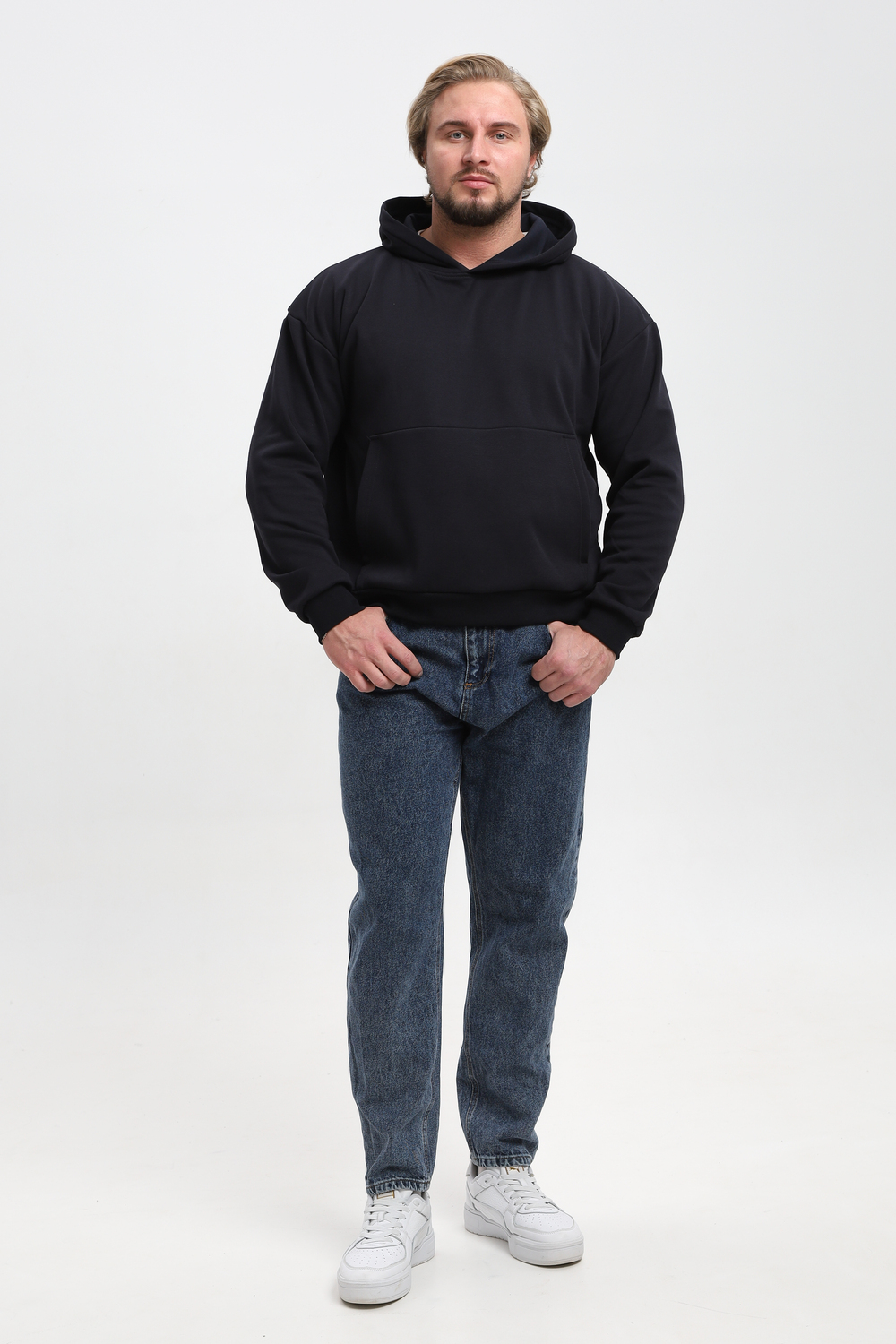 Толстовка мужская с капюшоном и с начесом станет незаменим элементом базового гардероба на каждый день. Кофта оверсайз с карманом кенгуру, рукава и низ на манжете. Выполнен из высококачественного футера 3-х нитка, ткань сохраняет форму после многих стирок. В такой толстовке будет комфортно в холодное время года осень, зима и весна. Свободный прямой широкий крой не сковывает телодвижения.
