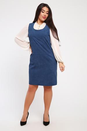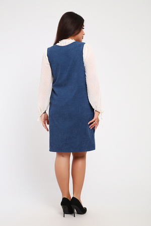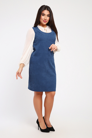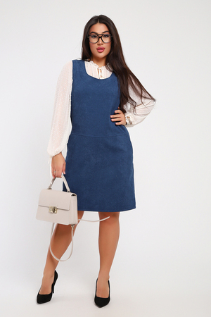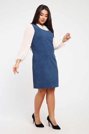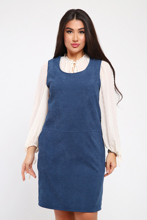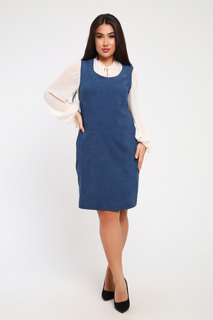 Создайте свой образ с помощью универсального вельветового сарафана. Это может быть и деловой, и повседневный, и праздничный образ, в зависимости от того, какую блузку или рубашку вы к нему подберете. Сарафан выполнен из микровельвета, ткани, очень легкой и простой в уходе. Вельвет не мнется, отлично сохраняет форму и цвет, не электризуется, к нему ничего не липнет. Сарафан прямого кроя, округлая горловина обработана обтачкой, полочка отрезная по линии чуть ниже талии. Глубокая пройма позволит комбинировать сарафан с любой блузкой, водолазкой,лонгсливом.  Длина изделия до середины колена при росте 164см. У модели на фото рост 170см. По бокам нижней части полочки расположены внутренние карманы. Данная модель универсальна и подойдет на любую фигуру, скроет недостатки и подчеркнет достоинства. В офисе, на работе, на прогулке в этом сарафане вы будете чувствовать себя уверенно и комфортно.