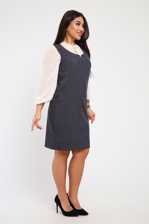 Создайте свой образ с помощью универсального вельветового сарафана. Это может быть и деловой, и повседневный, и праздничный образ, в зависимости от того, какую блузку или рубашку вы к нему подберете. Сарафан выполнен из микровельвета, ткани, очень легкой и простой в уходе. Вельвет не мнется, отлично сохраняет форму и цвет, не электризуется, к нему ничего не липнет. Сарафан прямого кроя, округлая горловина обработана обтачкой, полочка отрезная по линии чуть ниже талии. Глубокая пройма позволит комбинировать сарафан с любой блузкой, водолазкой,лонгсливом.  Длина изделия до середины колена при росте 164см. У модели на фото рост 170см. По бокам нижней части полочки расположены внутренние карманы. Данная модель универсальна и подойдет на любую фигуру, скроет недостатки и подчеркнет достоинства. В офисе, на работе, на прогулке в этом сарафане вы будете чувствовать себя уверенно и комфортно.