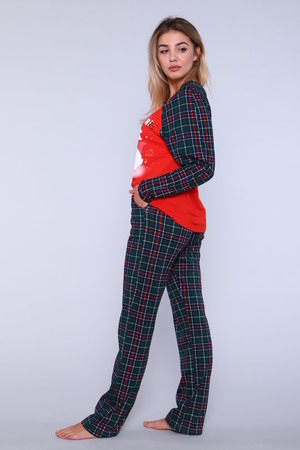 Пижама прямого силуэта с брюками. Кофта с рукавом реглан на манжете с декоративной печатью в стиле шелкографии. Брюки прямого кроя на резинке с карманами.