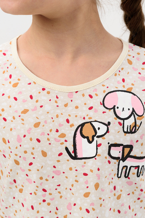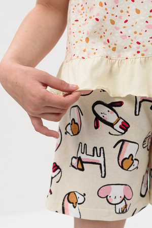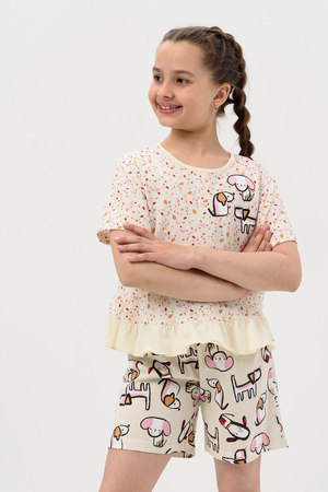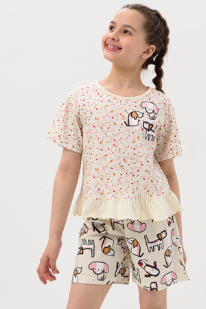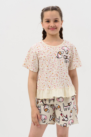 Детская трикотажная пижама для девочки с коротким рукавом и с шортами станет любимым элементом для дома, в садик. Хлопковый, летний, домашний костюм с футболкой и свободными шортами для подростка девочки можно носить как домашнюю детскую пижаму весной и летом.