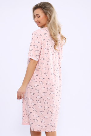 Сорочка женская трикотажная с рукавом до локтя. Нежные цветочки на светло-розовом фоне, отделка кружевом.