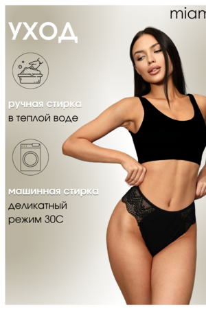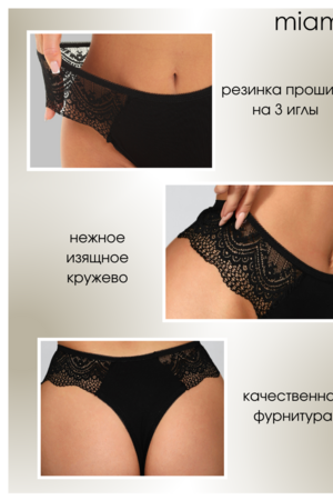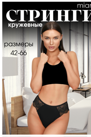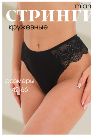 Представляем вашему вниманию чёрные кружевные стринги от бренда Miami, которые не оставят равнодушными представительниц прекрасного пола. Наши сексуальные стринги отличаются особым качеством, благодаря которому трусики будут долго служить вам и не потеряют свой цвет и форму. Трусики для полных женщин изготовлены из ткани высокого качества, содержащей в составе хлопок, что делает его идеальным для повседневного использования. Молодежные трусы-стринги из мягкого кружева хорошо тянутся, приятные к телу. Наше женское бельё из дышащего материала не сдавливают кожу и не оставляют следов. Они удобны для носки на каждый день, для дома, для прогулок, вечеринок и свадьбы. Наш размерный ряд может похвастаться как маленькими, так и большими размерами. Наше нижнее бельё подчеркнёт Вашу женственность, сделают Вас более соблазнительной и помогут осуществить любую эротическую фантазию.