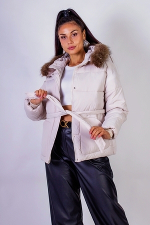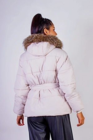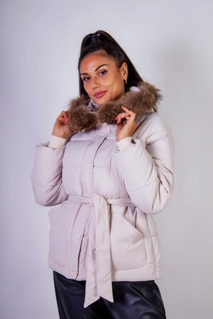 Куртка на поясе с капюшоном подойдет для демисезонного ношения или для теплой зимы. Она станет незаменимым элементом вашего гардероба в прохладное время года. Эта стильная куртка  сочетает в себе элегантность и функциональность, идеально подходя как для городских прогулок, так и для школы, работы или отдыха. Куртка защищает от ветра и дождя, обеспечивая вам комфорт и теплоту в холодные дни. Внимание уделено и деталям: опушка из натурального меха может быть легко отстегнута, что позволяет вам адаптировать куртку под любые погодные условия и ваш стиль. Застежка на молнии с дополнительной планкой на кнопках обеспечивает дополнительную защиту от холода и ветра. Рукава с трикотажными манжетами предотвращают потерю тепла, а два аккуратных кармана позволят удобно хранить мелочи. Пояс, который можно регулировать по настроению и фигуре, создает актуальный силуэт песочных часов, подчеркивая ваши достоинства и добавляя уверенности в каждом шаге. Эта куртка станет отличным выбором для женщин, которые ценят комфорт и стиль. Она легко сочетается с различными элементами гардероба: будь то джинсы, юбки или платья. Вы можете легко создать как повседневный, так и более строгий образ, добавив подходящие аксессуары.
