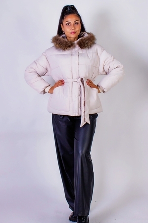 Женская куртка арт. 611 на поясе с капюшоном, натуральный мех, евро-зима, демисезон