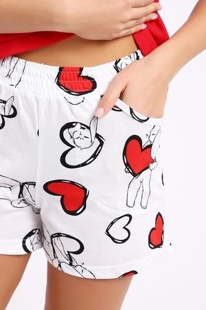 Пижама женская , шорты и топ с кружевом. Данная модель выполнена из трикотажного полотна кулирка ( хлопок 100%). Топ с V-образным вырезом обработан изящным эластичным кружевом. Шорты с поясом и карманами. Очень удобная модель порадует вас.
