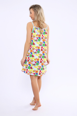 Сорочка женская на бретельках. Яркая расцветка с тропическими фруктами и ягодами.