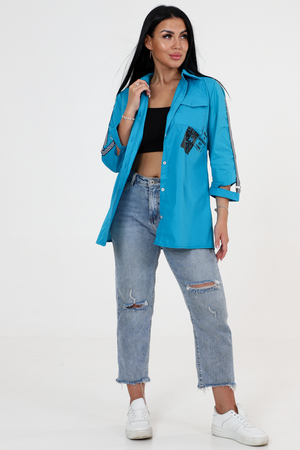 Приобретите стильную однотонную тунику рубашечного кроя с накладным нагрудным карманом прямо сейчас! Это изделие выполнено из высококачественной ткани супер софт и доступно в двух привлекательных расцветках: голубой и зеленой. Комфорт и модный образ объединены в одном изделии!Наша туника предлагается в разных размерах: от 48 до 58, чтобы каждый мог найти подходящий вариант. Полочка изделия украшена нагрудным накладным карманом с клапаном и шелкографией, что добавляет оригинальности внешнему виду. Рукара выглядит великолепно благодаря интересным деталям и украшению - рукав три четверти украшен тесмой и манжетом.Наша туника обладает всеми характеристиками, чтобы стать идеальной частью вашего гардероба. Стильный, комфортный и функциональный, этот товар позволит вам выглядеть на высоте в любой ситуации. Покупайте однотонную тунику рубашечного кроя с накладным нагрудным карманом прямо сейчас и придайте своему образу неповторимости!