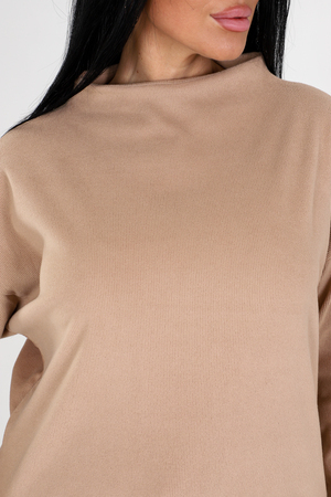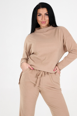 Костюм женский двойка состоит из туники свободного кроя и брюк на резинке. Туника имеет стойку на горловине и рукава длиной до запястья, обеспечивая теплую защиту для вашего верхнего тела. А брюки в стиле палаццо добавляют дополнительный комфорт и свободу движений.