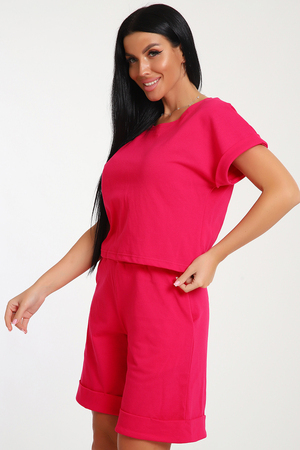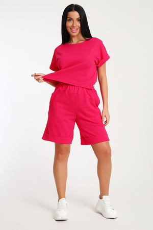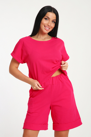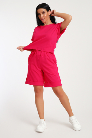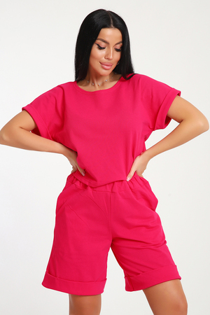 Костюм с шортами бермудами прекрасный вариант для комфортного время препровождения летом на прогулке, на даче, на море. Укороченная футболка свободно садится по фигуре, визуально стройнит, в сочетании с удлиненными шортами создает стильный, романтичный образ. Шорты с глубокими карманами в боковых швах подойдут для активного образа жизни, занятий спортом. Костюм с шортами можно носить в качестве домашней одежды.
