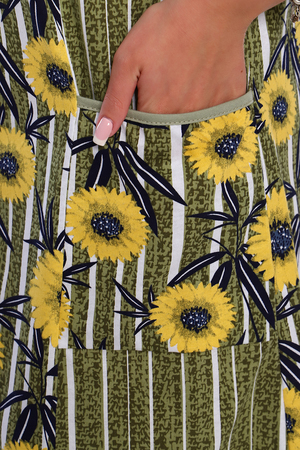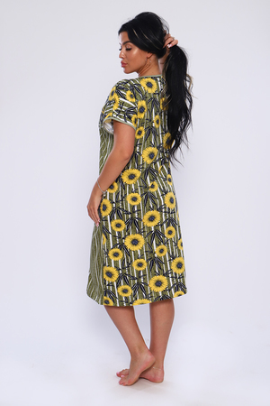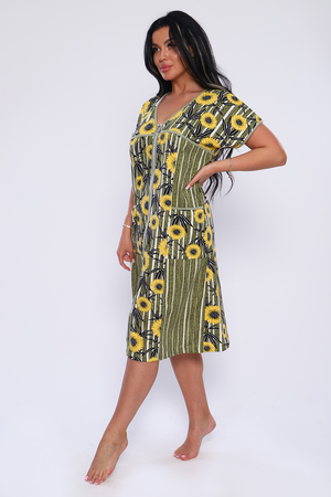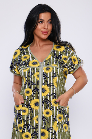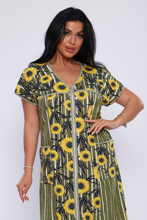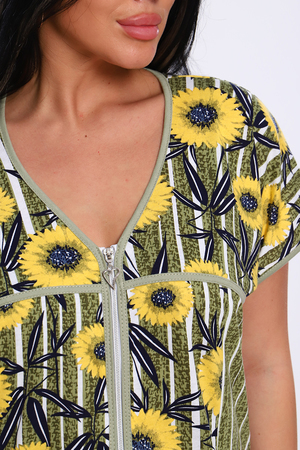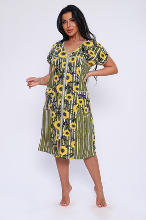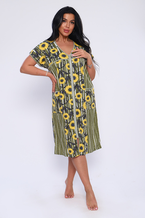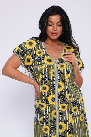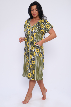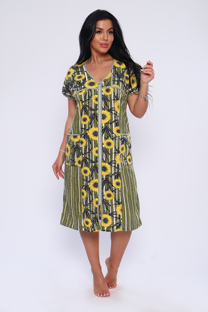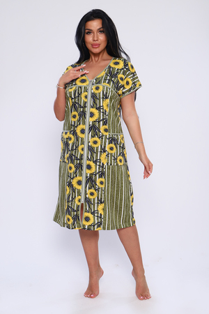 Комбинированый халат полуприлегающего силуэта с двумя накладными карманами в рельефных швах