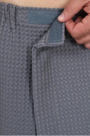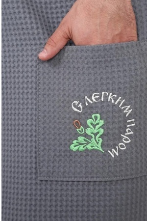 Килт банный мужской вафельный с вышивкой - полотенце-накидка на липучке для сауны и бани. Материал: высококачественное вафельное полотно, 100% хлопок. Плотность: 220 г/м2. Набедренное полотенце отлично держится за счет резинки и фиксации на широкую липучку. Килт для мужчин универсально подходит для любой комплекции с 44 по 52 размер. Имеется глубокий накладной карман с вышивкой "С легким паром" для хранения различных банных мелочей. Изделие приятно к телу, прекрасно впитывает влагу, быстро сохнет, хорошо переносит частые стирки, отличается долговечностью и прочностью. Это многофункциональный аксессуар, который обеспечит комфорт и удобство, а также гигиеническую защиту во время и после банных процедур. Килт можно постелить на лежак в сауне или использовать в качестве полотенца после душа, он удобен в массажном салоне или на пляже. Это замечательный подарок для мужчины - любителя парной, хаммама, сауны, бани, различных spa - комплексов!