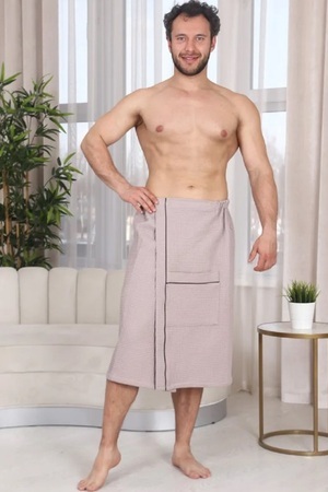 Килт банный мужской - полотенце-накидка на липучке для сауны и бани. Материал: вафельное полотно, 100% хлопок. Плотность: 220 г/м2. Набедренная накидка (килт для бани) отлично держится за счет резинки и фиксации на широкую липучку. Килт для мужчин удобно подходит для любой комплекции с 44 по 52 размер, а также с 54 по 60 размер. Накидка для сауны имеет глубокий накладной карман для хранения банных мелочей. Изделие приятно к телу, прекрасно впитывает влагу, быстро сохнет, хорошо переносит частые стирки, отличается долговечностью и прочностью. Это многофункциональный аксессуар, который обеспечит комфорт и удобство, а также гигиеническую защиту во время и после банных процедур. Килт можно постелить на лежак в сауне или использовать в качестве полотенца после душа, он удобен в массажном салоне или на пляже. Это замечательный подарок для мужчины - любителя парной, хаммама, сауны, бани, различных spa - комплексов!