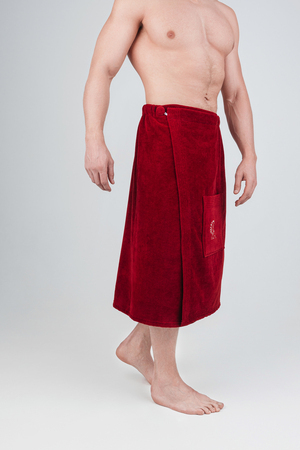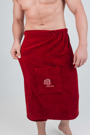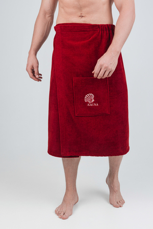 Килт банный мужской банный - полотенце накидка на пуговице в универсальном размере для ванной, сауны и бани. Состав - 100% хлопок. Материал: натуральный хлопковый велюр с мягкой махровой изнанкой. Лицевая сторона выполнена из короткостриженой махры, материал не подвержен зацепкам, поэтому изделие долговечное и простое в уходе. Плотность: 360 г/м2, вес: 500 г. Набедренная накидка отлично держится за счет резинки и фиксации на пуговицу. Килт для бани удобно подходит для мужчин любой комплекции: от 44 до 52 размера. Махровый килт для сауны имеет глубокий накладной карман с вышивкой для хранения банных мелочей. Килт прекрасно впитывает влагу, хорошо переносит частые стирки, отличается прочностью и имеет презентабельный внешний вид. В отличие от изделий из микрофибры хлопковый килт не вызывает аллергию и не электризуется. Это многофункциональный аксессуар, который обеспечит комфорт и удобство, а также гигиеническую защиту во время и после банных процедур. Его можно постелить на лежак в сауне или использовать в качестве полотенца после душа, он удобен в массажном салоне или на пляже. Это замечательный подарок для мужчины - любителя парной, хаммама, сауны, бани, различных spa - комплексов! Упакован в прозрачную сумку на молнии с ручками.