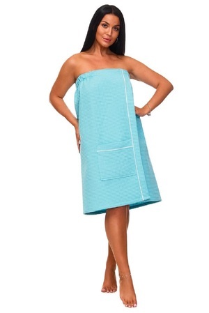 Привлекательное и качественное полотенце-накидка на липучке для посещения сауны и бани из натурального вафельного полотна, 100% хлопок. Плотность: 220 г/м2. Вафельная накидка банная в большом размере комфортно держится на теле за счет широкой и надежной липучки и внутренней резинки, подходит для любой комплекции с 44 до 52 размер и с 54 по 60 размер, имеет глубокий накладной карман для хранения женских мелочей, украшенный контрастным кантом. Интересный дизайн в сочетании с рифленой фактурой ткани создает очень женственный образ. Килт для женщин прекрасно впитывает влагу, хорошо переносит частые стирки и быстро сохнет, при этом выглядит благородно и элегантно. Изделие обеспечит комфорт и гигиеническую защиту во время и после банных процедур. Его можно постелить на лежак в сауне или использовать как полотенце после душа, он удобен в массажном салоне или на пляже. Это замечательный подарок для женщины - любительницы парной, хаммама, сауны, бани, различных spa - комплексов!