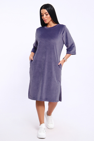 Туника женская мягкая велюровая, полуприлегающего силуэта. Вырез горловины округлой формы, обработан обтачкой из основной ткани. Туника с карманами и разрезами в боковых швах, длина чуть ниже колена. Рукав втачной, длина чуть ниже локтя. Для более облегающего силуэта вы можете взять данную модель на размер меньше. Туника имеет большой размерный ряд.