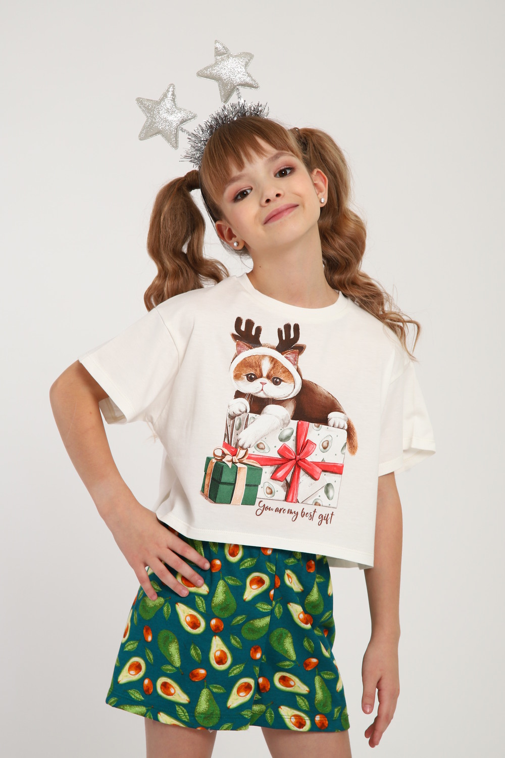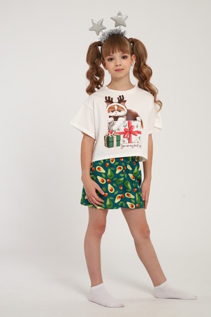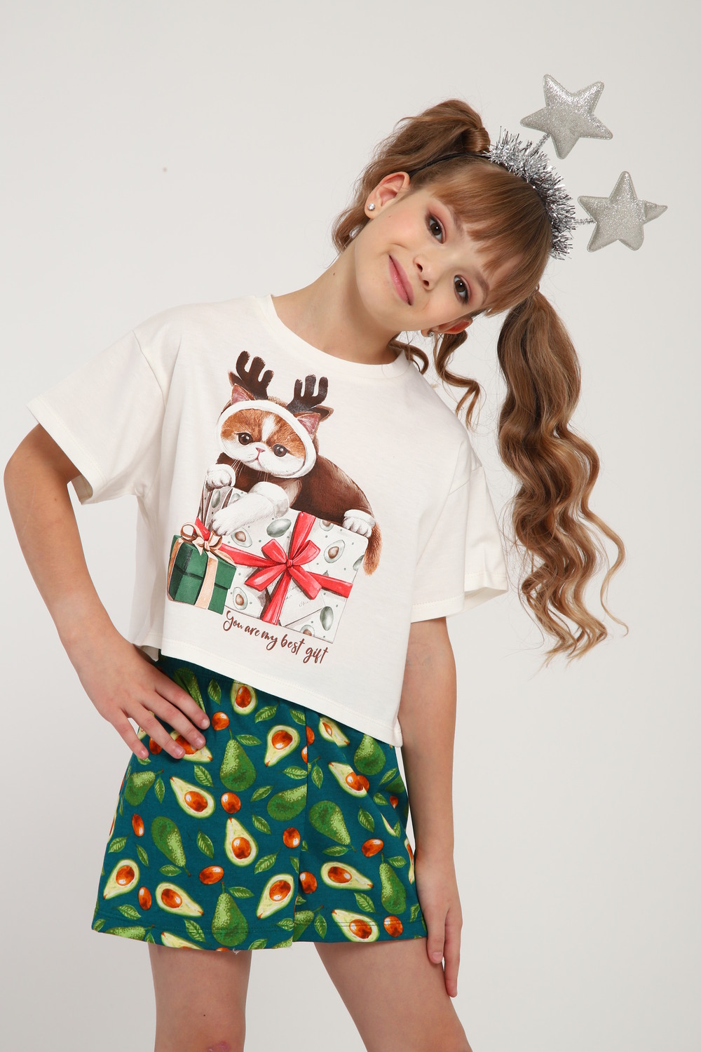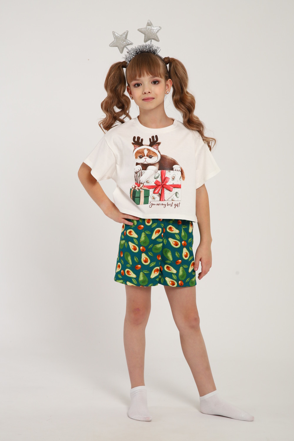 Пижама с шортами для девочки ПД-019-073 Кот Новый год