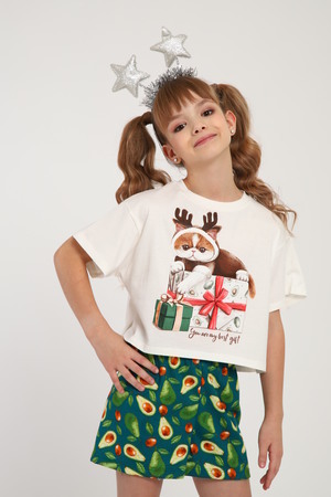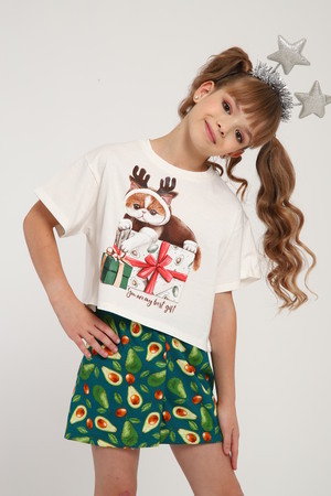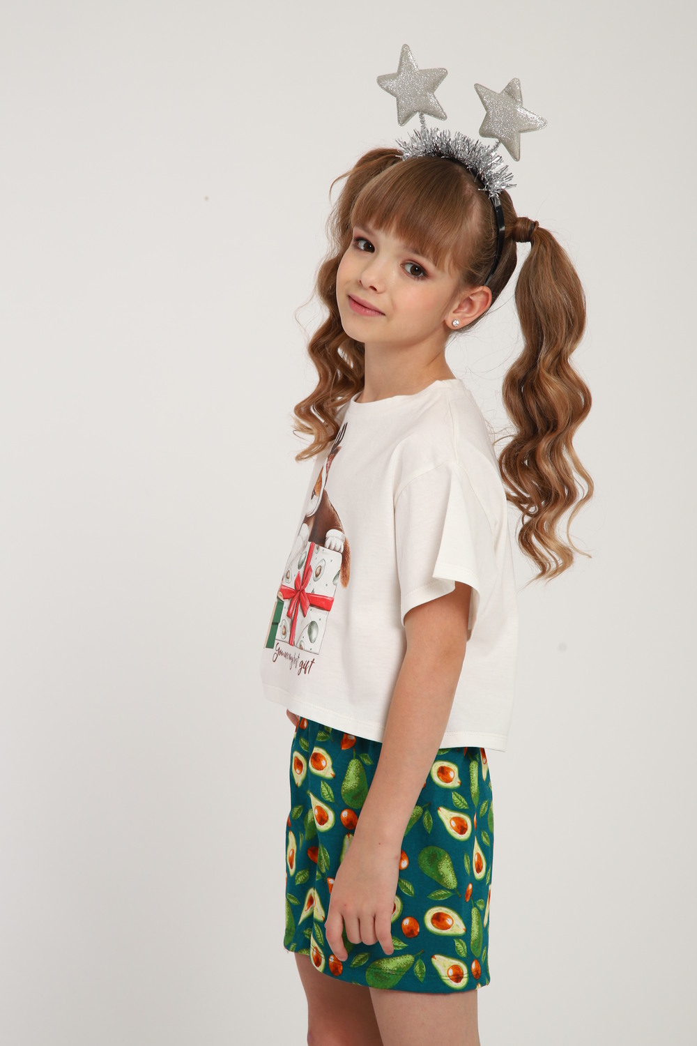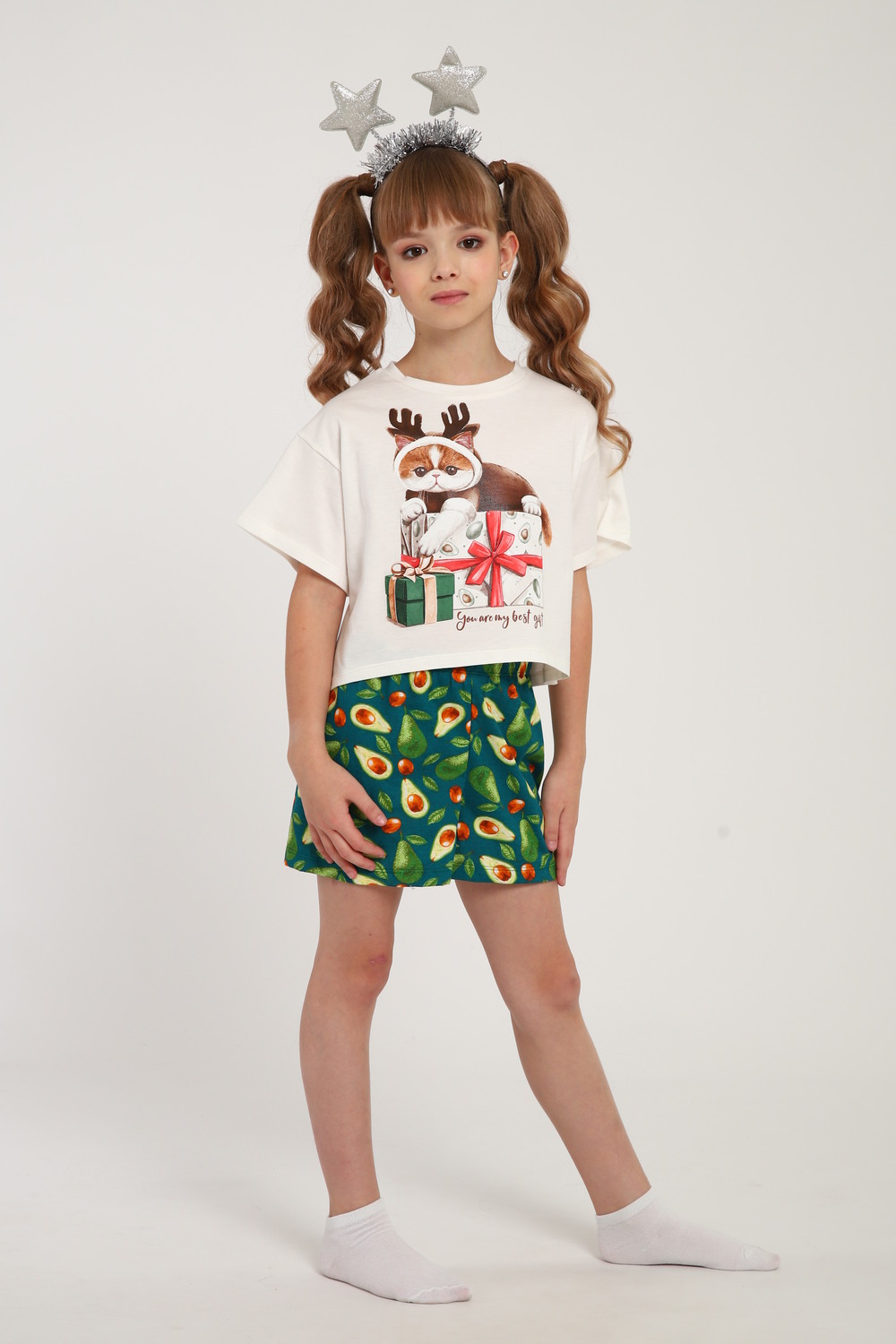 Пижама с шортами для девочки ПД-019-073 Кот Новый год
