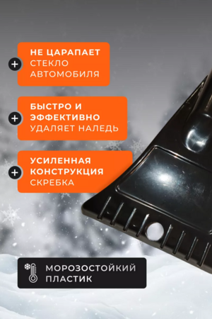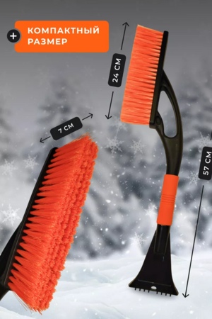 Щетка для машины от снега со скребком позволит в считанные минуты очистить Ваш автомобиль от снега и наледи без повреждения лакокрасочного покрытия авто и стекол. Мощный скребок для машины от снега на обратной стороне щетки позволит без труда счистить заледенелый снег и лед. Основание изготовлено из морозостойкого и износостойкого пластика и оснащено теплоизолирующей ручкой из поролона. Износостойкий, широкий скребок 10 см не лопнет и не потрескается при перепаде температур. Ручка надежно зафиксирована на корпусе метелки для чистки машины от снега, не проворачивается и легко очищает даже толстый покров. Жесткий у основания и более мягкий на концах ворс предотвращает повреждение и царапины автомобиля. Ворсинки щетки сметки от снега расположены в 4 ряда, а распушенная щетина легко позволит счистить любой, даже мокрый снег.