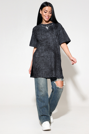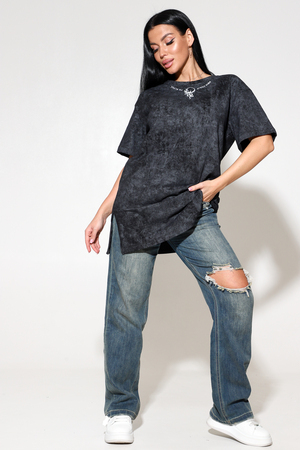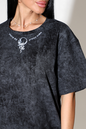 Черная футболка в стиле оверсайз с ярким рисунком лучший выбор для модных и стильных женщин, девушек, девочек подростков. Футболка женская пошита из премиального трикотажа -100% Хлопок. Модель футболки без карманов со спущенной линией плеча и оригинальным дизайном. Имеет втачной рукав, разрезы в боковых швах и округлый вырез горловины. При соблюдении требований по уходу – принт практически вечный, не тянется и не выцветает. Подойдет для любого мероприятия: фотосессии, вечеринок. футболку можно использовать в повседневной жизни для прогулок, похода в спорт зал или в качестве домашней туники. Идеальный вариант для беременных женщин. Прекрасно зарекомендовала себя как одежда для дома, так и для сна. Интересная одежда также может стать прекрасным подарком и сюрпризом для мамы, подруги на любой праздник - День рождения, 8 марта, 14 февраля- тренд 2024 года.