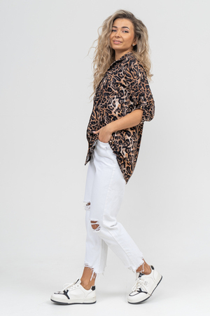 Женская стильная туника - рубашка выполнена из 100% хлопчатобумажного полотна. Новый дизайн и отличное качество делает изделие модным, легким и приятным на ощупь, не сковывает движения, поэтому отлично подойдет как для школы, дома и работы, так и для повседневной носки. Модель дополняет рубашечный воротник, паты и планка с расстёгивающимися пуговицами, делая её более комфортной. Женская свободная рубашка не сковывает движения, поэтому отлично подойдет будущим мамам, беременным женщинам и кормящим. Расстёгивающаяся планка сделает кормление малыша удобным и комфортным, а за счет качественного хлопкового трикотажа еще и безопасным и экологичным. Мы специально разработали рубашку для женщин большого размера. Большие размеры любят и подростки, которые предпочитают вещи оверсайз (oversize). Рубашка женская - это базовая вещь в гардеробе девушки или женщины, является идеальным вариантом для путешествий. Удлиненную рубашку можно носить дома и в качестве повседневной одежды.