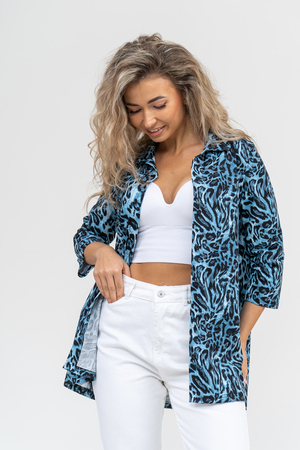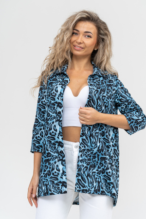 Елена Викторовна21.07.2025 в 11:03Рубашка выручила на пляже вместо халатика, синий интересный принт, кулирка плотная, Стрика на отлично, не села, не вытянулась, не облезла