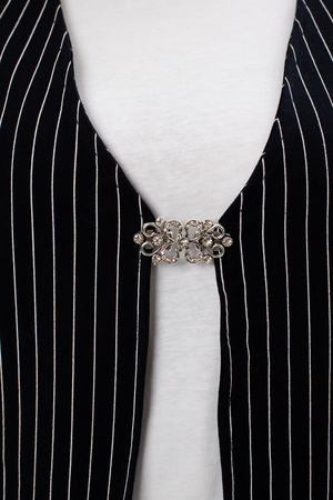 Декоративная бижутерия для одежды может преобразить любой наряд. Зажим подходит для оформления кардигана и кофты, жилета, а также пиджака. Украшает и придаёт одежде элегантность. Этот аксессуар служит как эстетичное украшение, так и функциональная застежка, удобная в использовании. Полезен для уменьшения талии визуально, создавая идеальный силуэт. Легко фиксируется на одежде с помощью клипсы. Используемый металлический замок гарантирует надёжность и долгий срок службы. Эти маленькие штучки помогают создать уникальный стиль и подчеркнуть индивидуальность. Для женщин предпочитающих практичную бижутерию, это лучший вариант среди множества предложений на рынке аксессуаров. Такой зажим – отличный выбор для тех, кто ищет подарок своей второй половинке. Он станет символом внимания и деликатного настроя к важному человеку в жизни. Подобный жест всегда будет оценён по достоинству. Кроме эстетичной функции украшения, этот элемент выполняет практическую роль в формировании одежды на дамах с различными предпочтениями стиля. Это позволяет легко переосмыслять существующие образы без приобретения новых частей гардероба. В светлое времени суток серебристый блеск металла добавляет особую лёгкость и воздушность образу, отражая свет со всех сторон и создавая приятные переливы у вас перед глазами. Эти зажимы несложно заменить или снять в случае необходимости изменения фасона или образа всего наряда в целом — очень удобные и практичные детали женского гардероба. Выбирая такое решение, вы обеспечите себе возможность оставаться актуальной при любых погодных условиях года — будь то тёплые дни или прохладные вечера, смены сезонов более не станут проблемой благодаря малым декоративным элементам вашего гардероба с функциональной составляющей повседневной жизни женщин любого возраста.