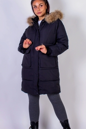 Парка оснащена молнией, дополненной планкой на кнопках, что придаёт изделию аккуратный вид и защищает от ветра. Капюшон со съемной опушкой из натурального меха добавляет изделию нотку уюта, а также служит дополнительной защитой от морозного ветра. Вы всегда можете снять опушку, если захотите более строгий или спортивный образ.