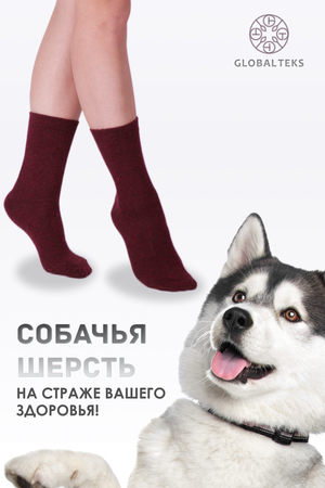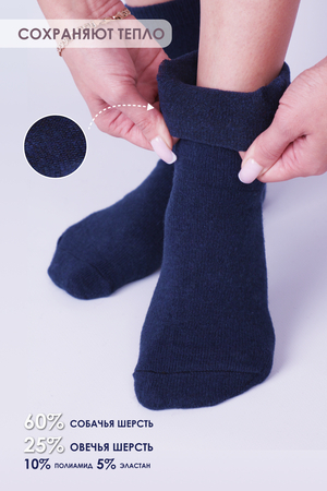 60% собачья шерсть: Эта шерсть идеально сохраняет тепло, придавая носкам мягкость и пушистость.