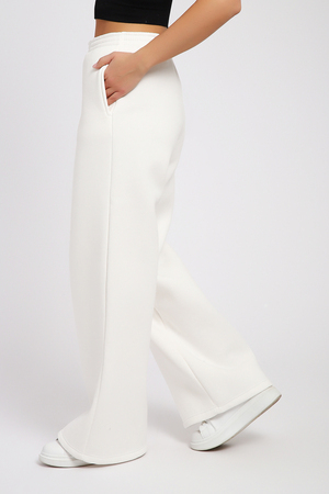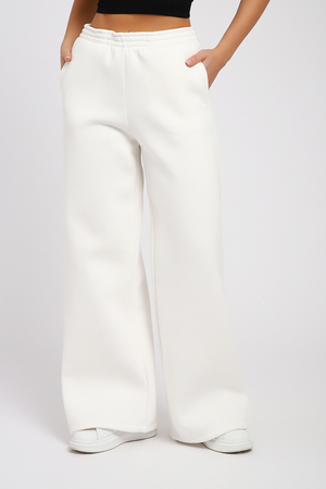 Брюки из футера с начесом свободного покроя. В боковых швах карманы.