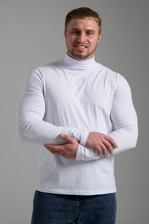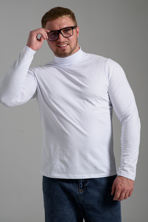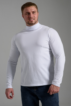 Водолазка с горлом – идеальный выбор в холодное время года. Воротник стойка, одинарный. Изготовлена из высококачественного хлопка, что обеспечивает тепло и комфорт в любых погодных условиях. Ткань содержит эластан, за счет этого тянется и облегает фигуру. Водолазка не только стильная, но и практичная - не теряет форму после многократных стирок.
