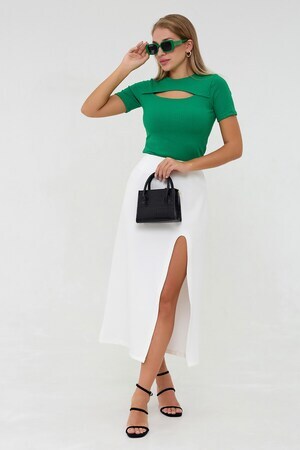 Модель: Кофта женская в рубчик с акцентным декольте 2ксL SMILE