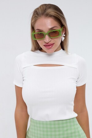 Модель: Кофта женская в рубчик с акцентным декольте 2ксL SMILE