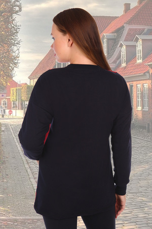 Удлиненный комбинированый джемпер полуприлегающего силуэта, дополнен двумя вместительными карманами