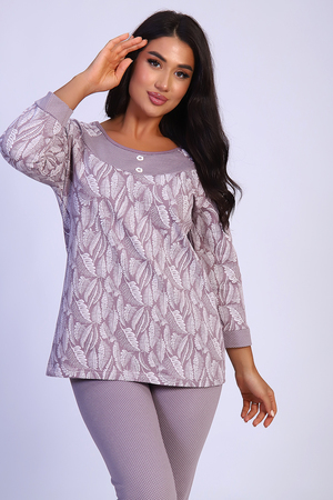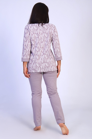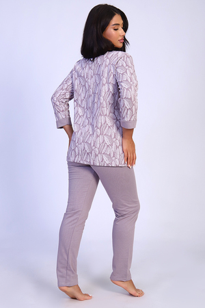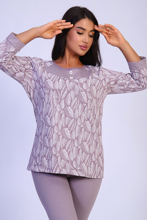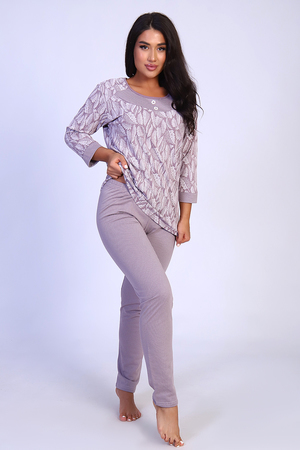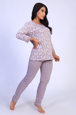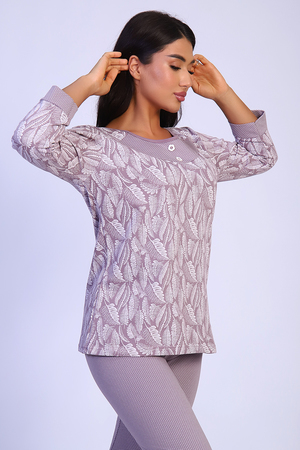 Теплая пижама с длинными брюками, кофта полуприлегающего силуэта с рукавом 3/4. Брюки из футера петля, кофта из футера с начесом