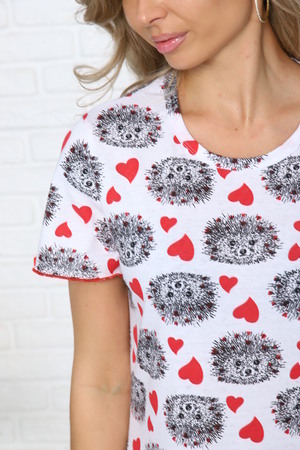 Сорочка домашняя хлопковая с коротким рукавом. Круглая горловина, небольшой разрез на бедре и декоративный бантик.