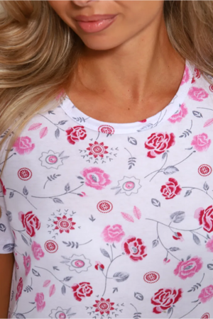 Сорочка домашняя хлопковая с коротким рукавом. Круглая горловина, небольшой разрез на бедре и декоративный бантик.