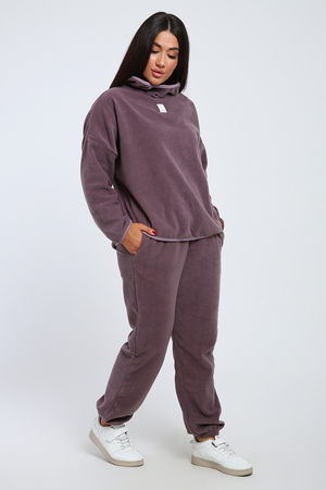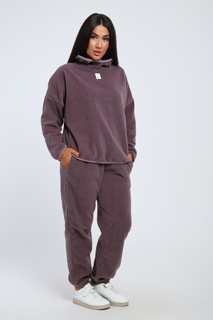 Костюм женский свободного кроя выполнен из мягкого флиса. Костюм состоит из брюк и худи. Брюки с карманами, внизу на резинке; худи с капюшоном, края обработаны кантом контрастного цвета. Костюм очень комфортный и прятный к телу, прекрасно подойдет как для дома, так и для прогулок и спорта.